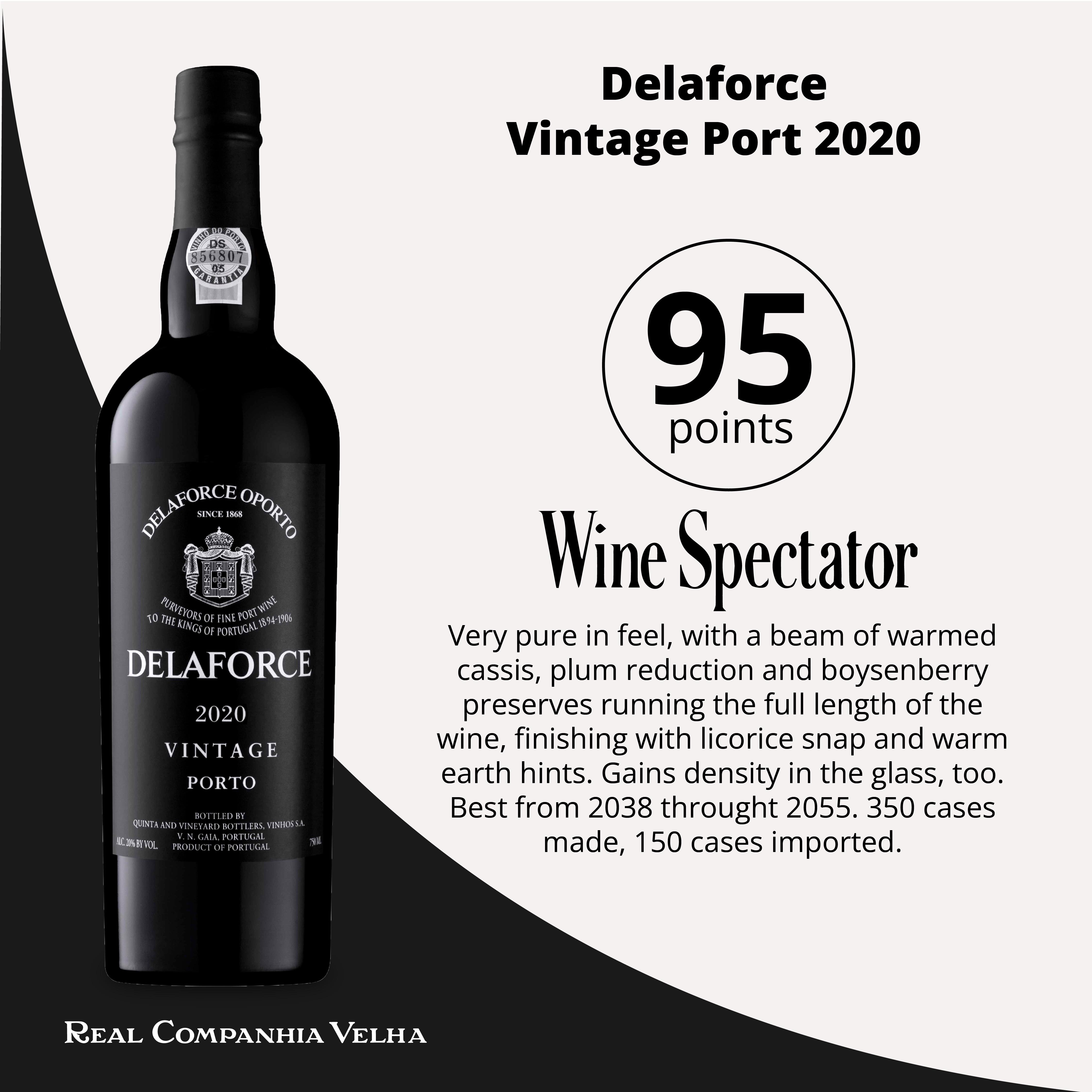 Delaforce Vintage Ports are produced only in years of outstanding quality and represent a selection of the very best wines of the harvest, chosen for their ability to continue improving for many decades in the bottle. Their elegance and balance are achieved by the selection of the very best grapes from our vineyards in the Cima Corgo area of the Douro Valley.